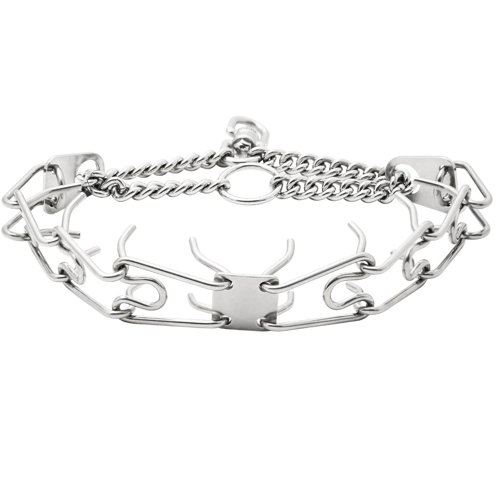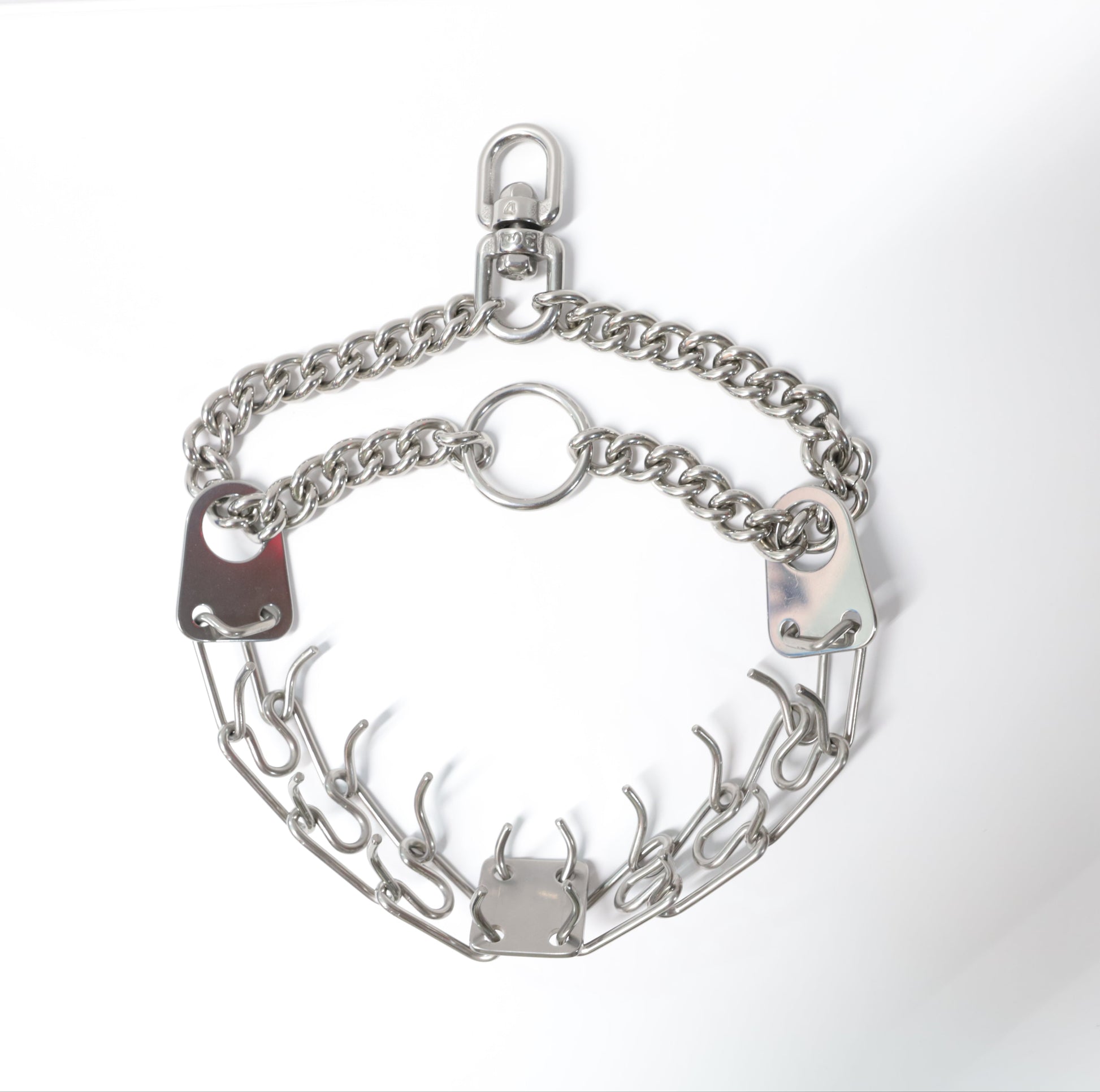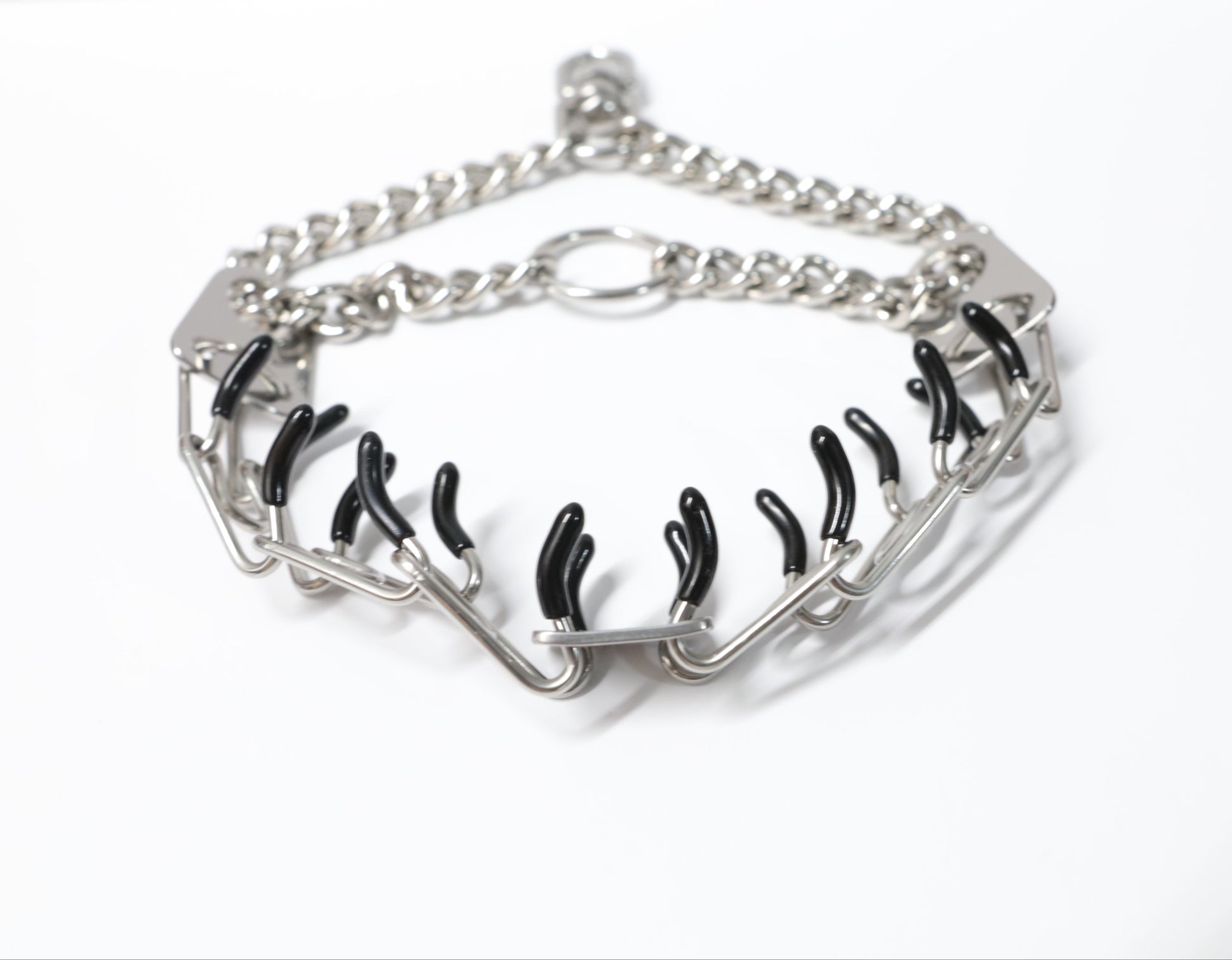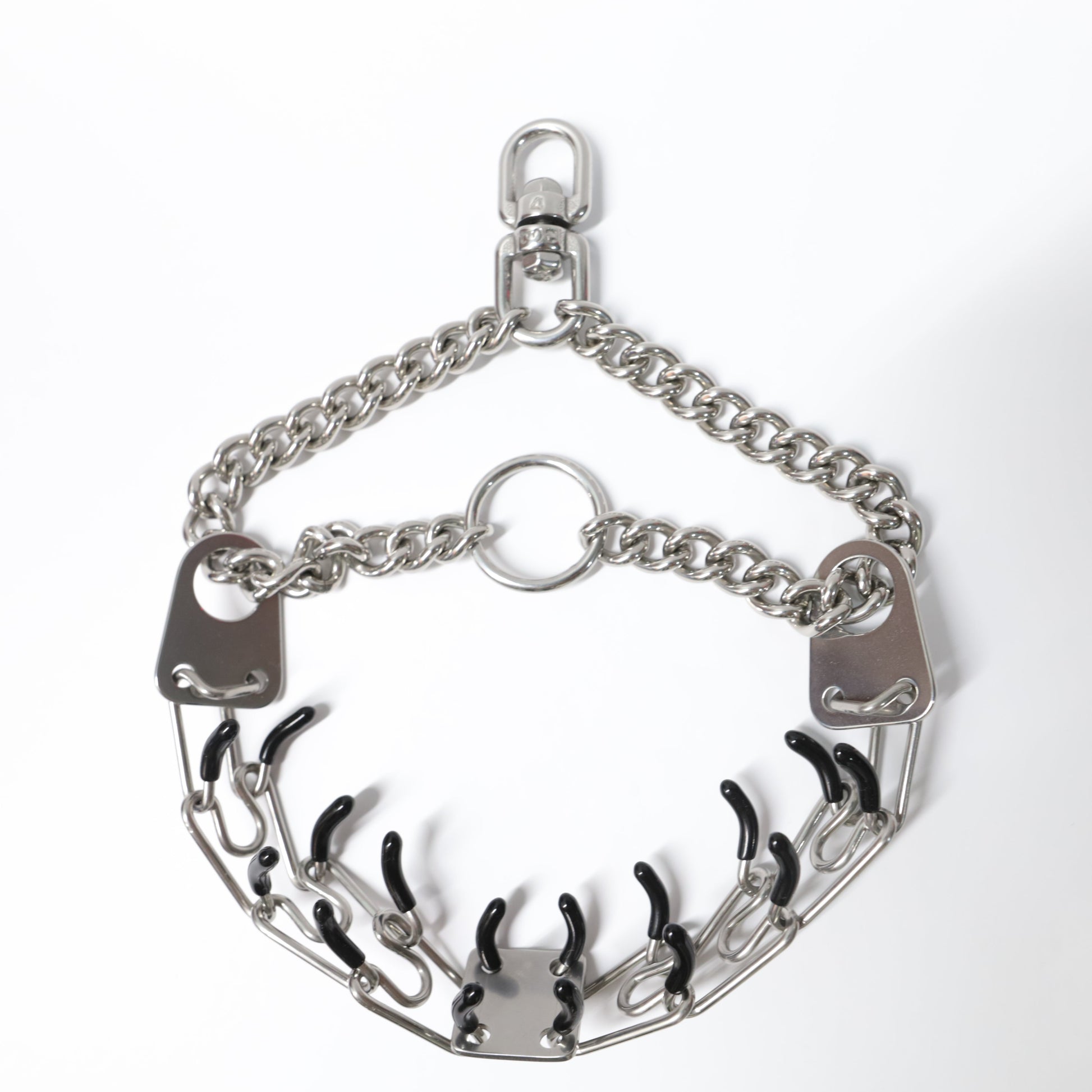 Finger Pinch Removal System: Each prong can be pinched with just the tip of your fingers to adjust and remove the prong collar. This allows the pinch collar to be used anytime and anywhere.